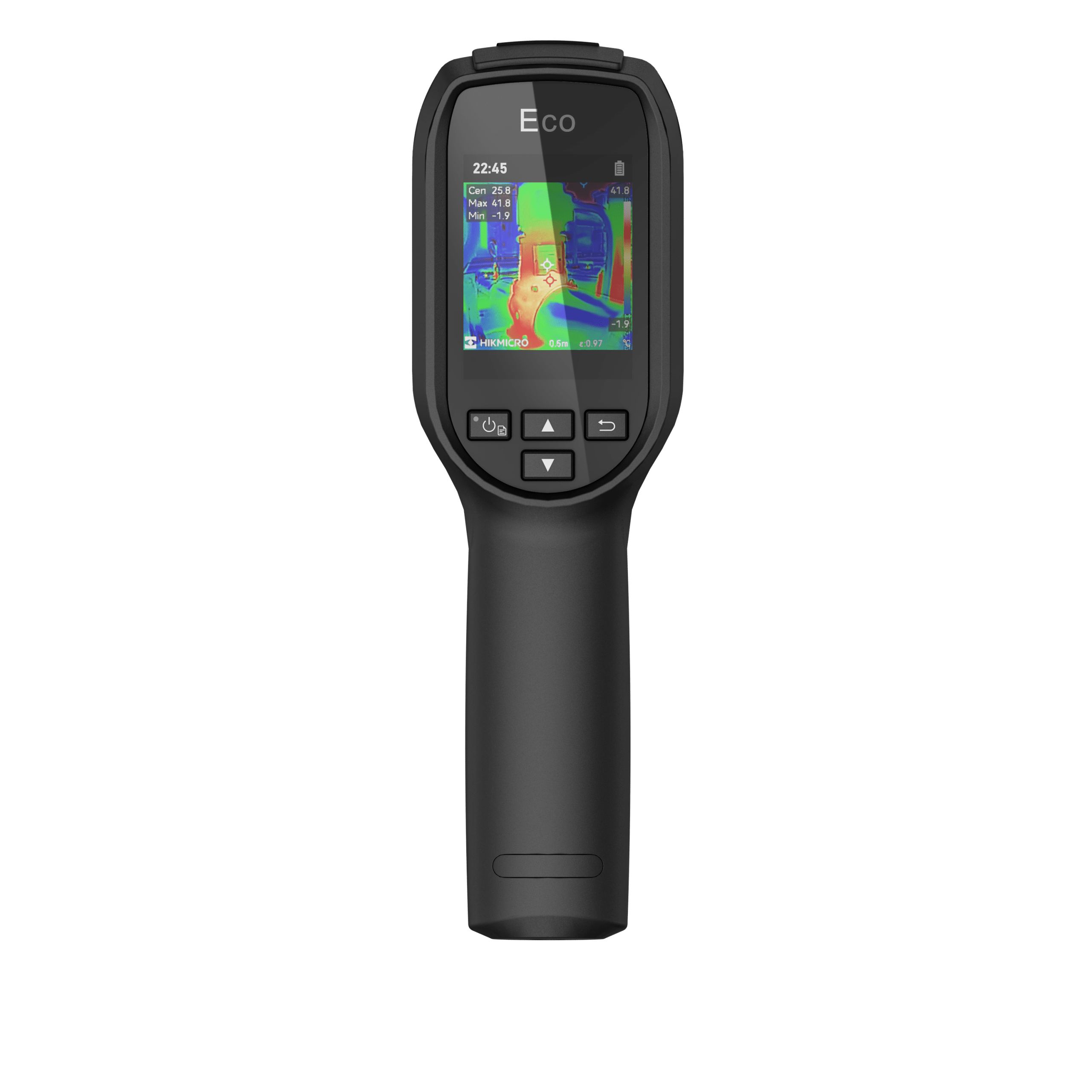 - Caméras IR et visible intégrées : L’Eco-V est équipée d’une caméra infrarouge et d’une caméra visible, vous permettant de basculer entre trois modes d’image : thermique, visuel et fusion.
