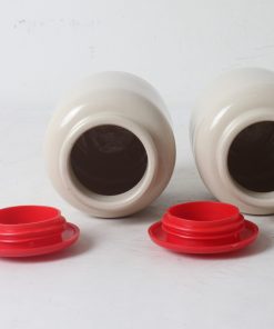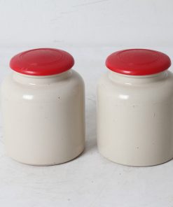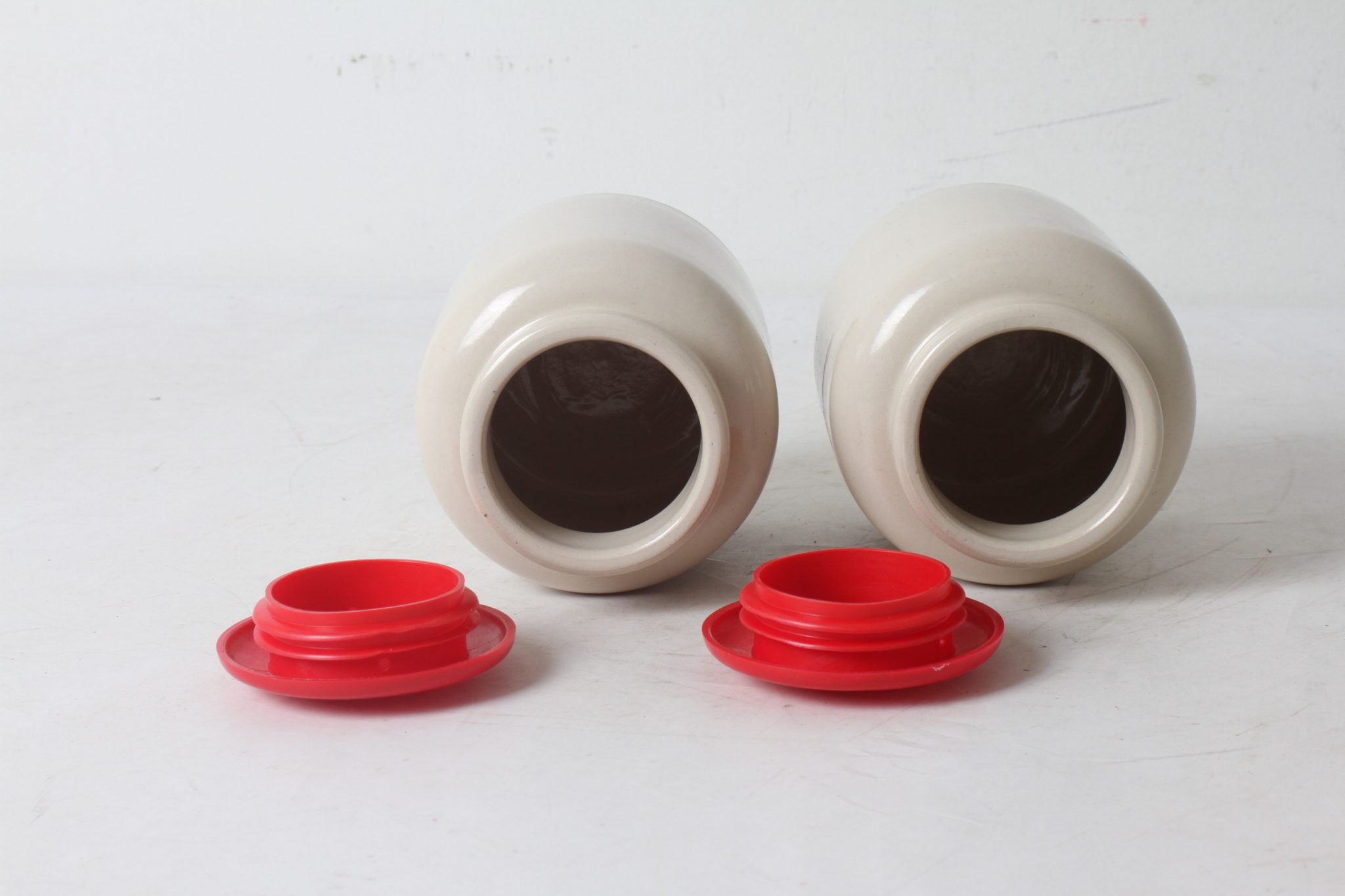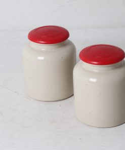 Deux bocaux de cuisine en terre vernissée.