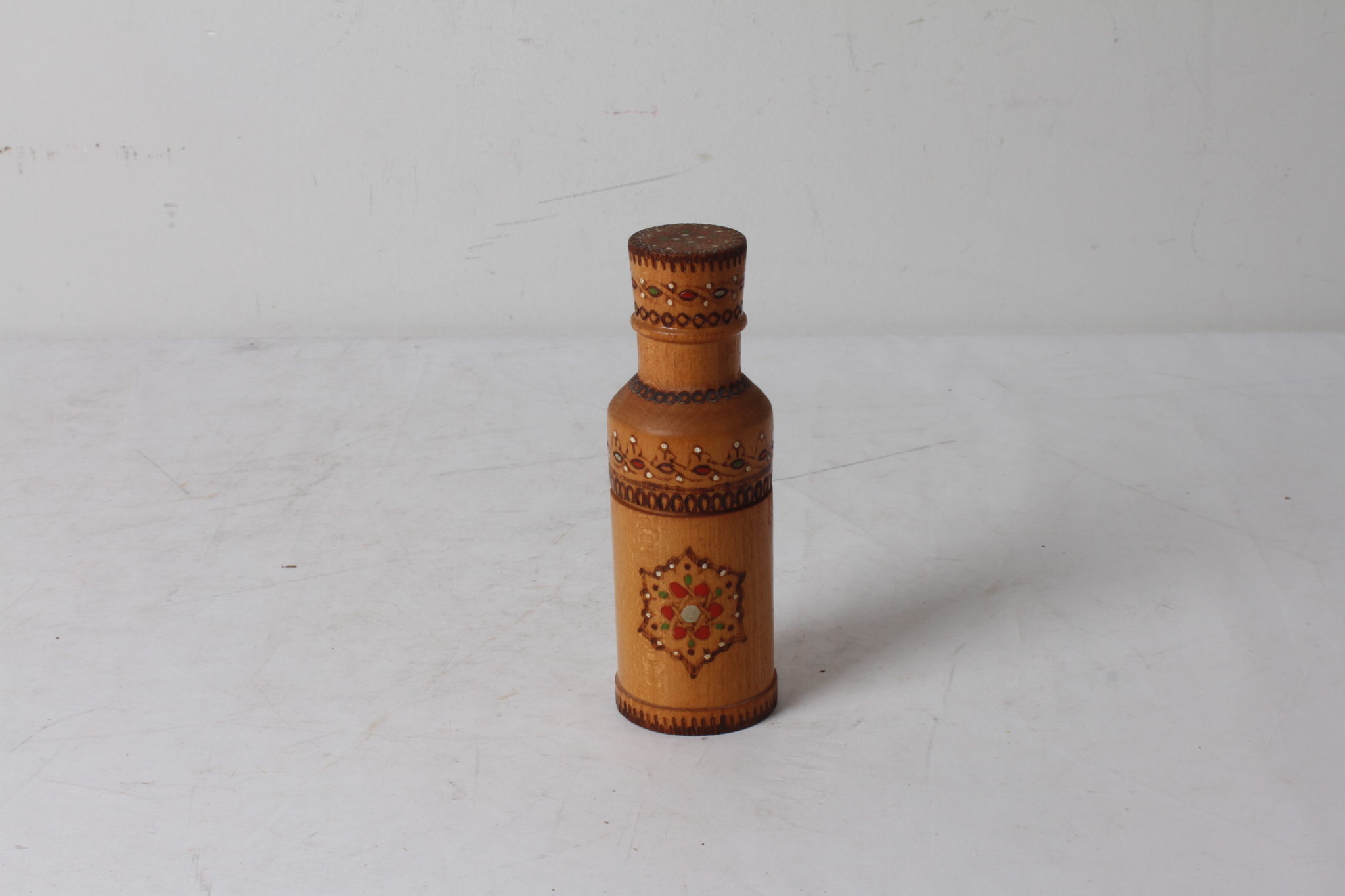Etui en bois pyrogravé renfermant un flacon de 10 ml.