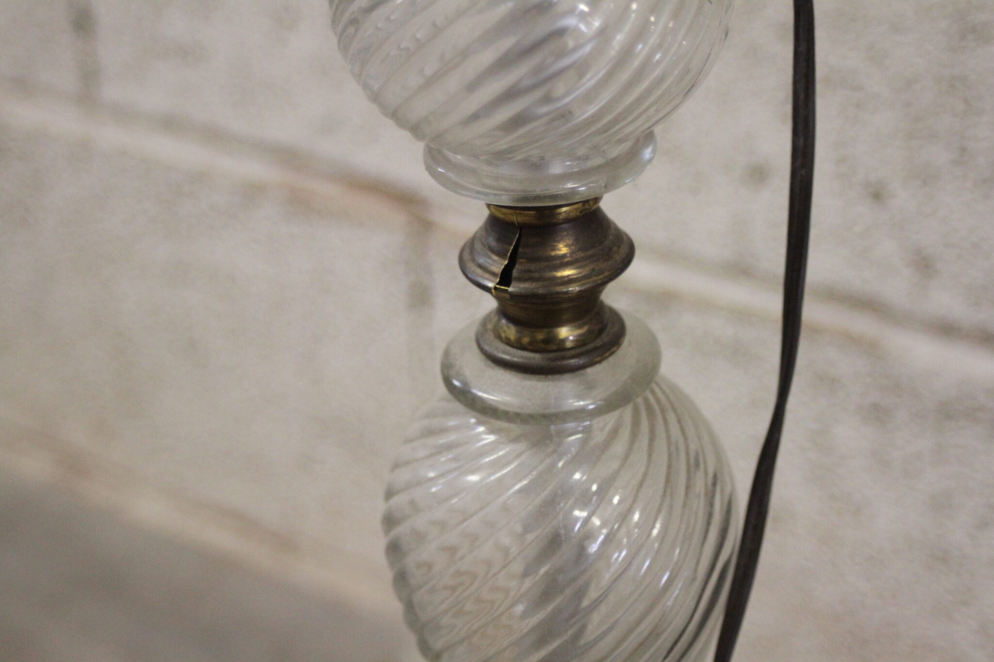 Produit qui présente des traces d’usure et 1 fissure d’une partie en laiton sur le pied (voir photos).