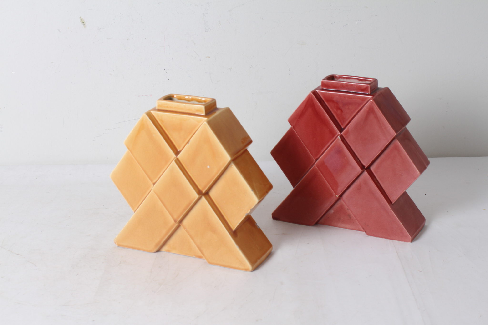 Lot de deux vases géométriques.