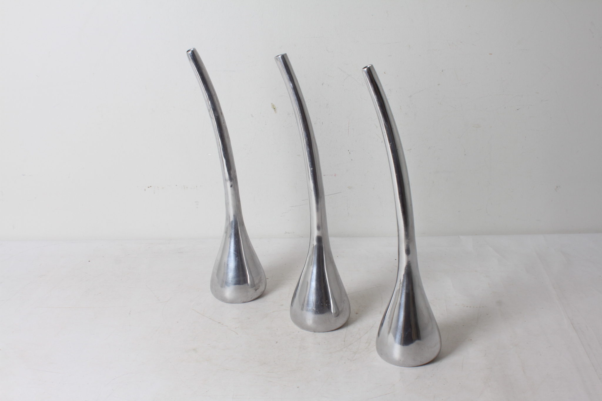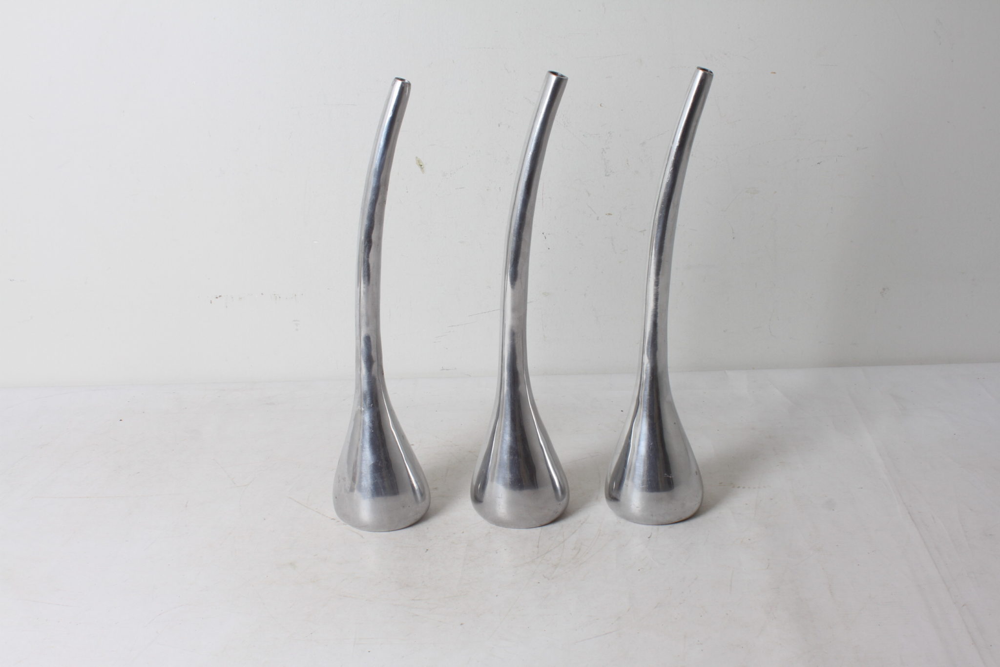 Trio de vases soliflores modernistes en aluminium.