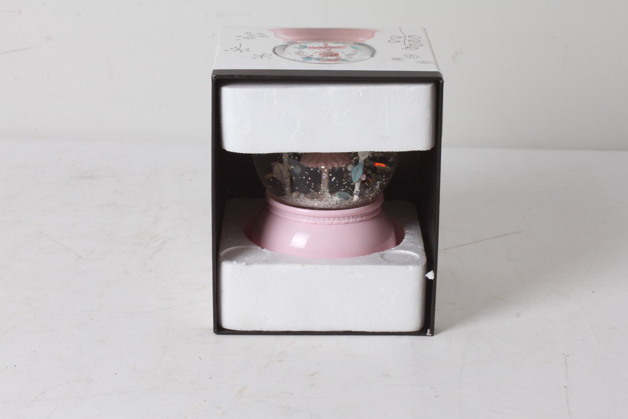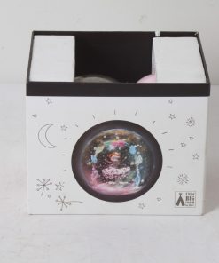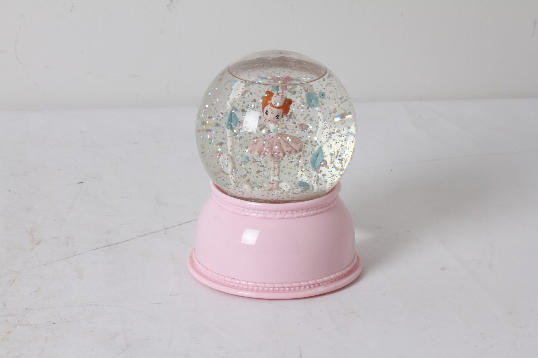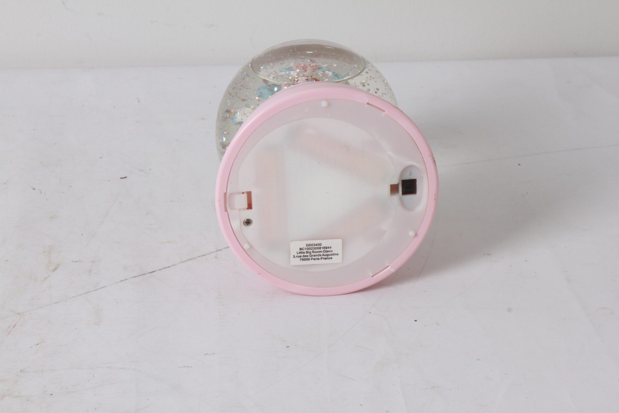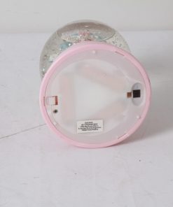 Fonctionne avec des piles, pas besoin se secouer un mécanisme fait tournoyer les paillettes et diffuse différentes couleurs.